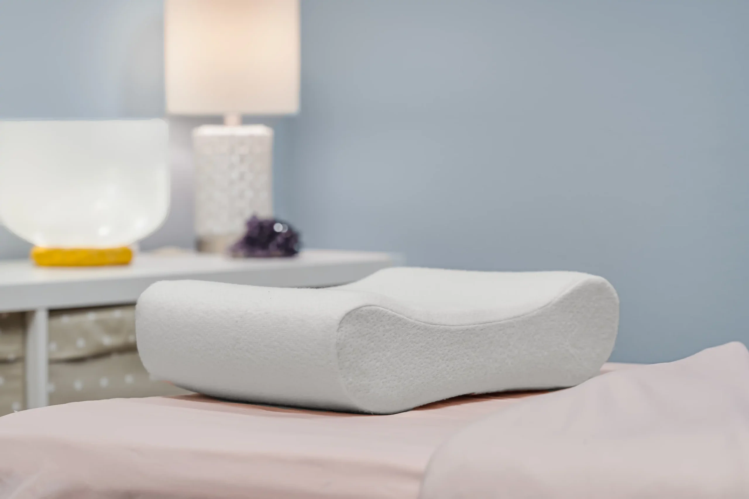 The Cradle Wave therapy pillow was designed by a body alignment specialist to achieve the ideal neck alignment while sleeping. The purpose is to reduce neck and back pain as well as minimize TMJ disorder, sleep apnea, and snoring. The Cradle Wave pillow is made from premium natural latex foam with a density chosen for its buoyancy, support, and softness. It comes with a removable bamboo liner and 300 thread count organic white cotton pillow case, both selected for their hand feel and sustainability. Its ergonomic contoured design gives maximum comfort while its smaller profile allows for easy portability and travel. Its machine washable, both the removable liner and pillow as well!